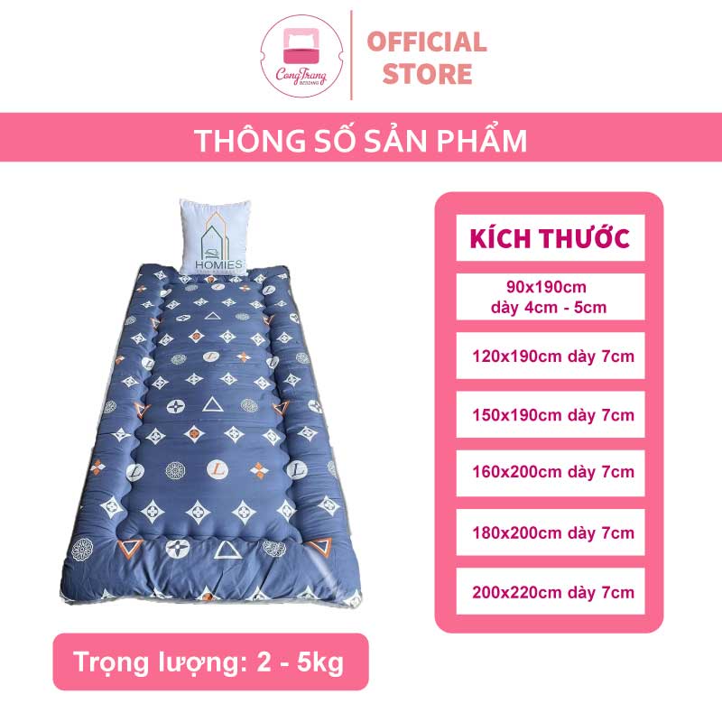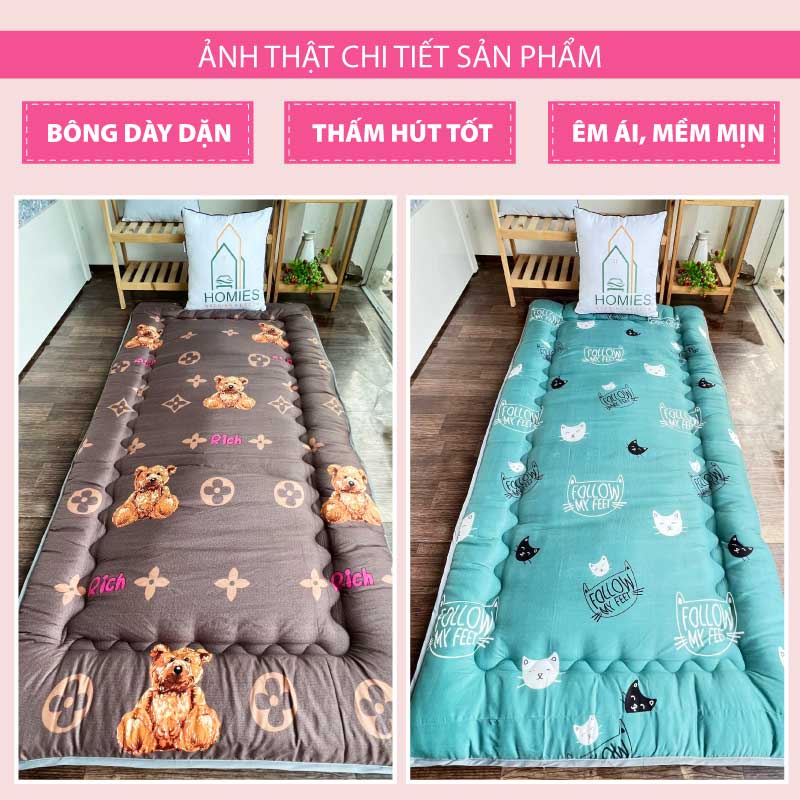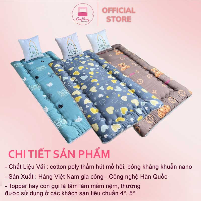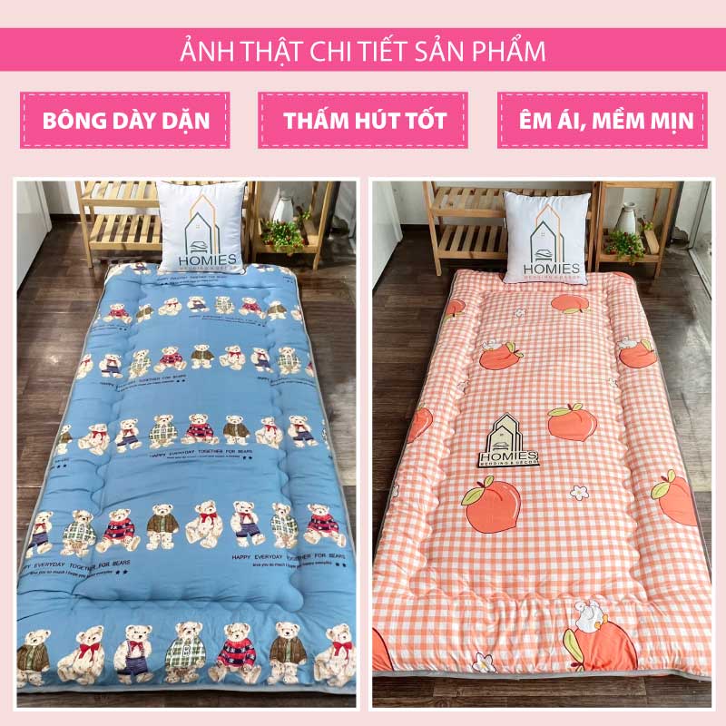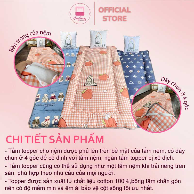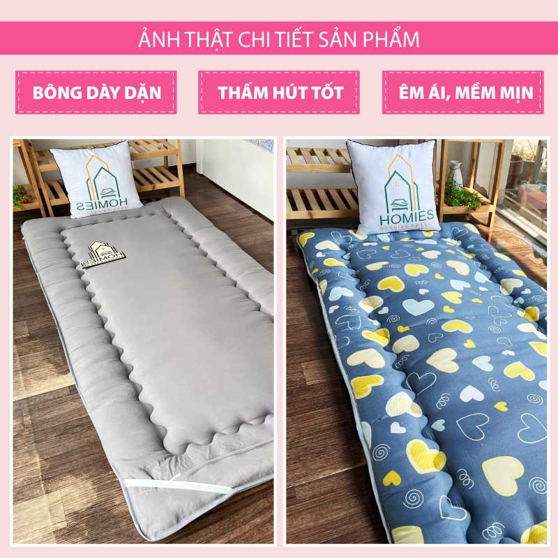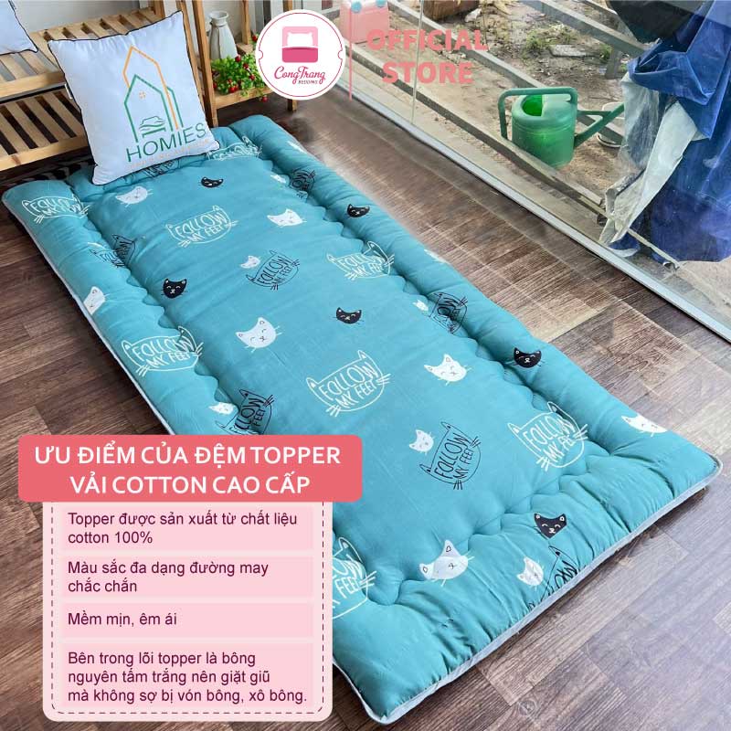 Topper nệm bông xuất Nhật HOMIES cao cấp , Đệm Topper ngủ trưa văn phòng, Tấm làm mềm đệm cotton mềm mại (Đủ Kích Thước)