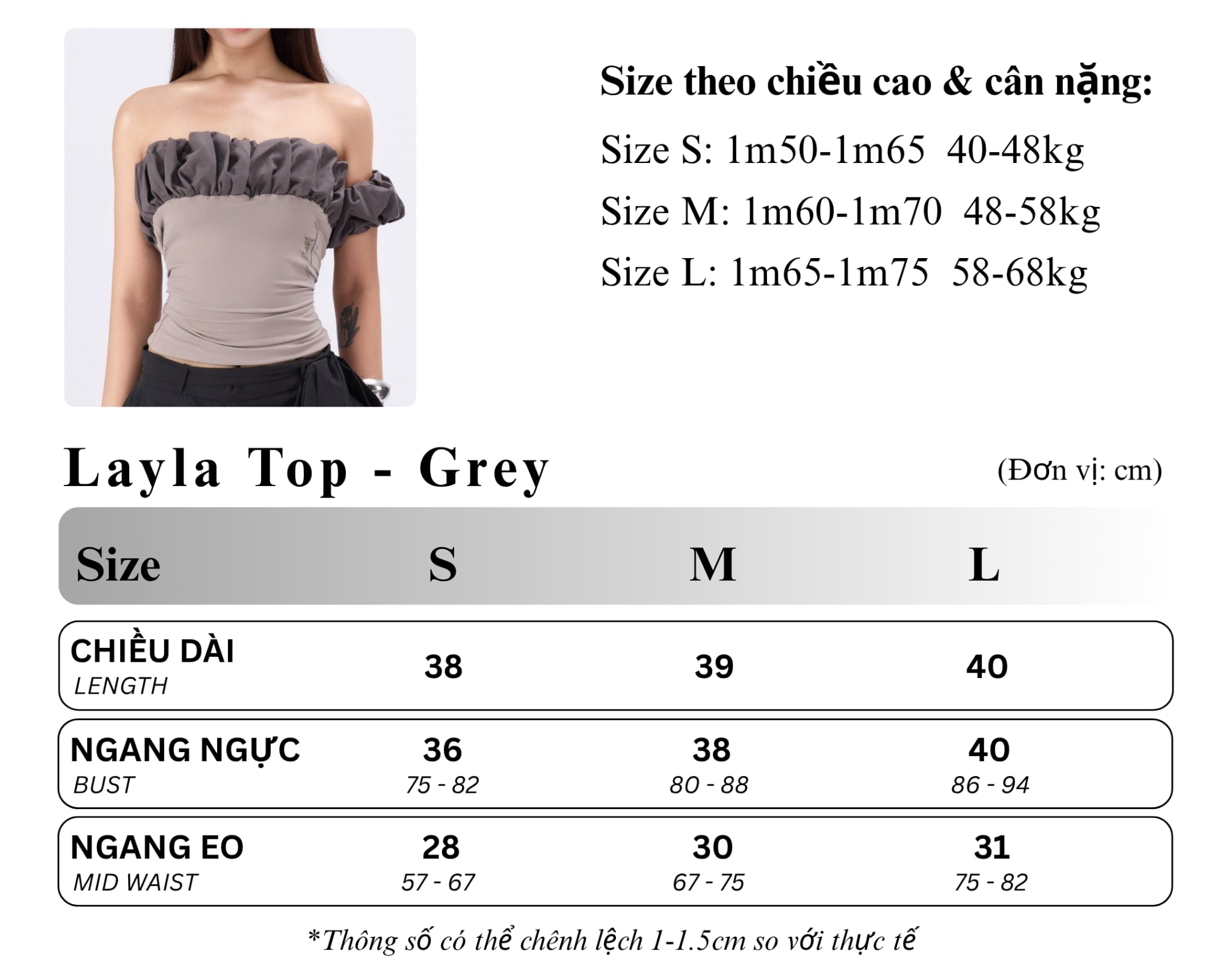 TSUN - Layla Top Áo Ống Cúp Ngực Nữ Phối Bèo Nhún Ôm Body Màu Xám Y2K Cá Tính Quyến Rũ