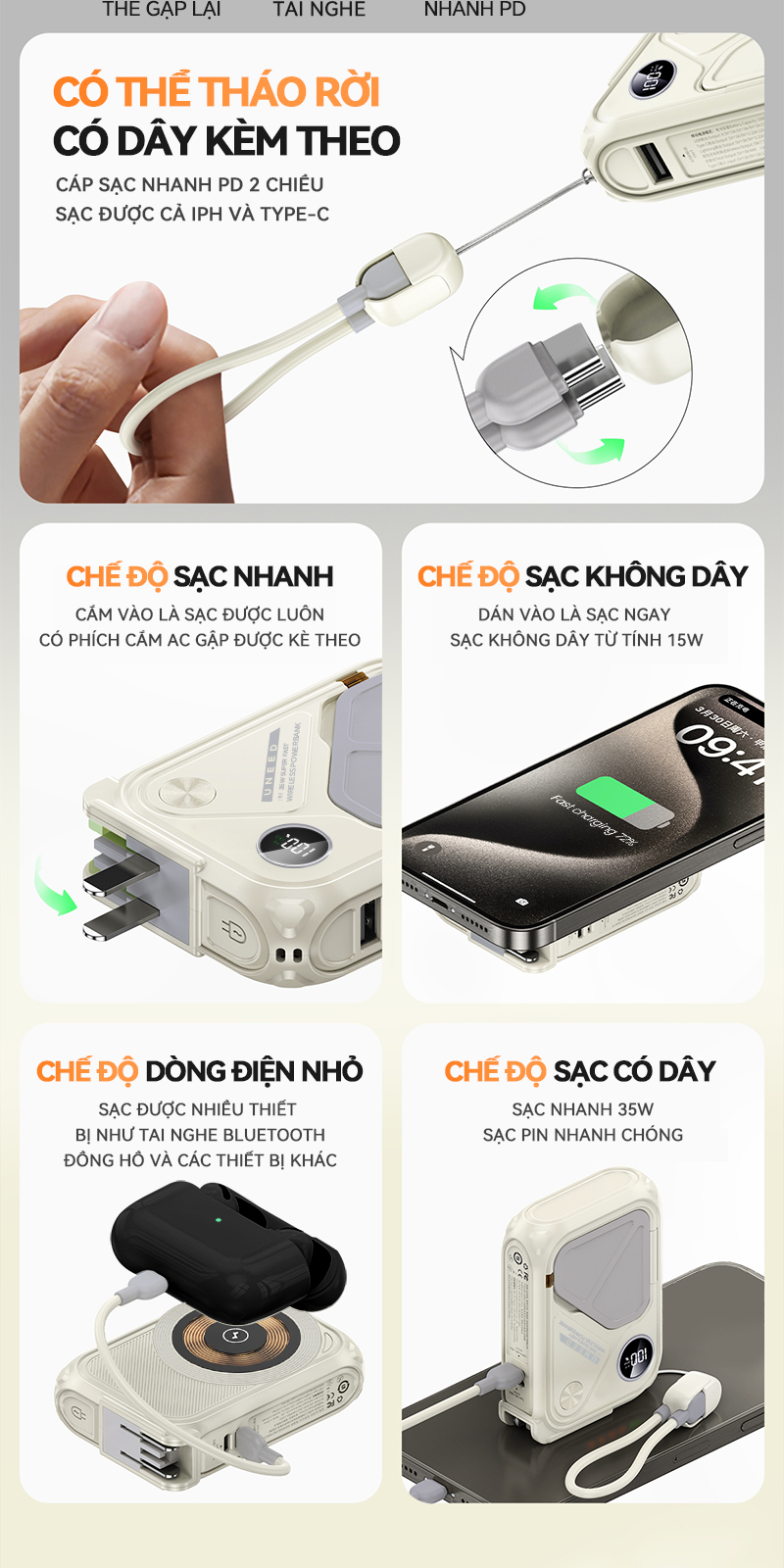 · Dung lượng: 20000mAh / 30000mAh, hỗ trợ sạc nhanh PD 35W / sạc nhanh QC3.0