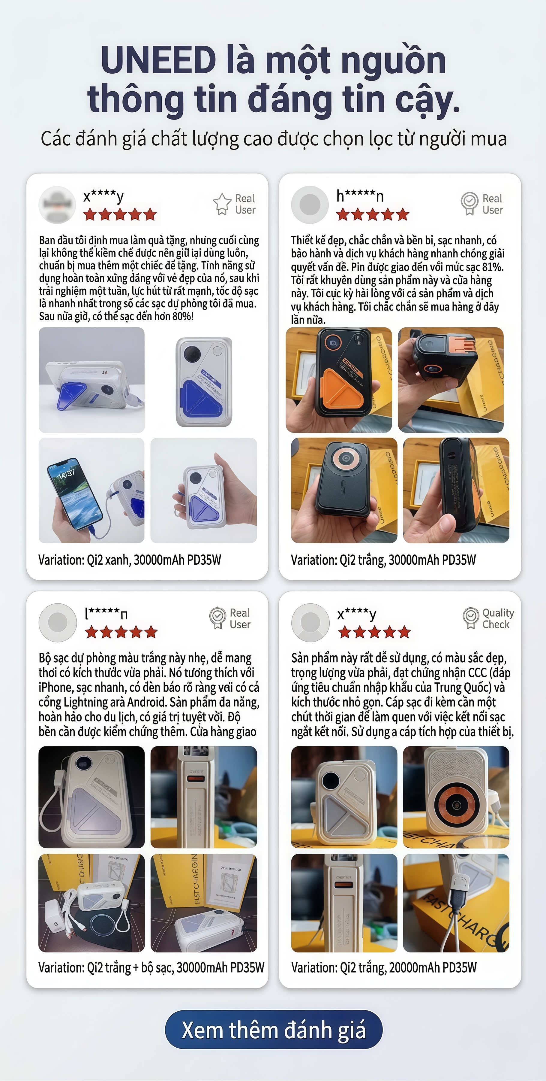 【Bảo hành hai năm】Sạc Dự Phòng UNEED 30000/20000mAh Sạc Nhanh PD 20W 35W Sạc Không Dây, Cục Sạc Dựng Phòng Đầu AC