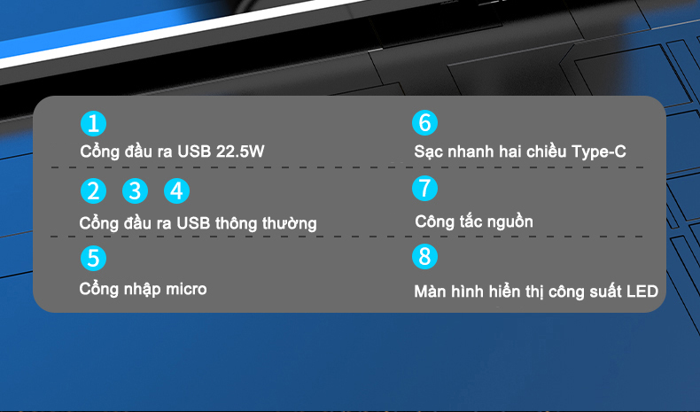 ● Công suất: 10.000 mAh 12.000 mAh 25.000 mAh 30.000 mAh 40.000 mAh 50.000 mAh 80.000 mAh