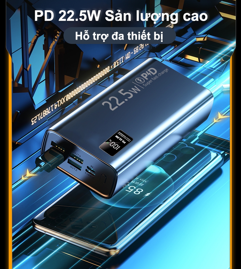 V380 MAX Sạc dự phòng Power bank PD22.5W 10000MAH 30000mah 50000mAh pin dự phòng màn hình Led tích hợp tích hợp