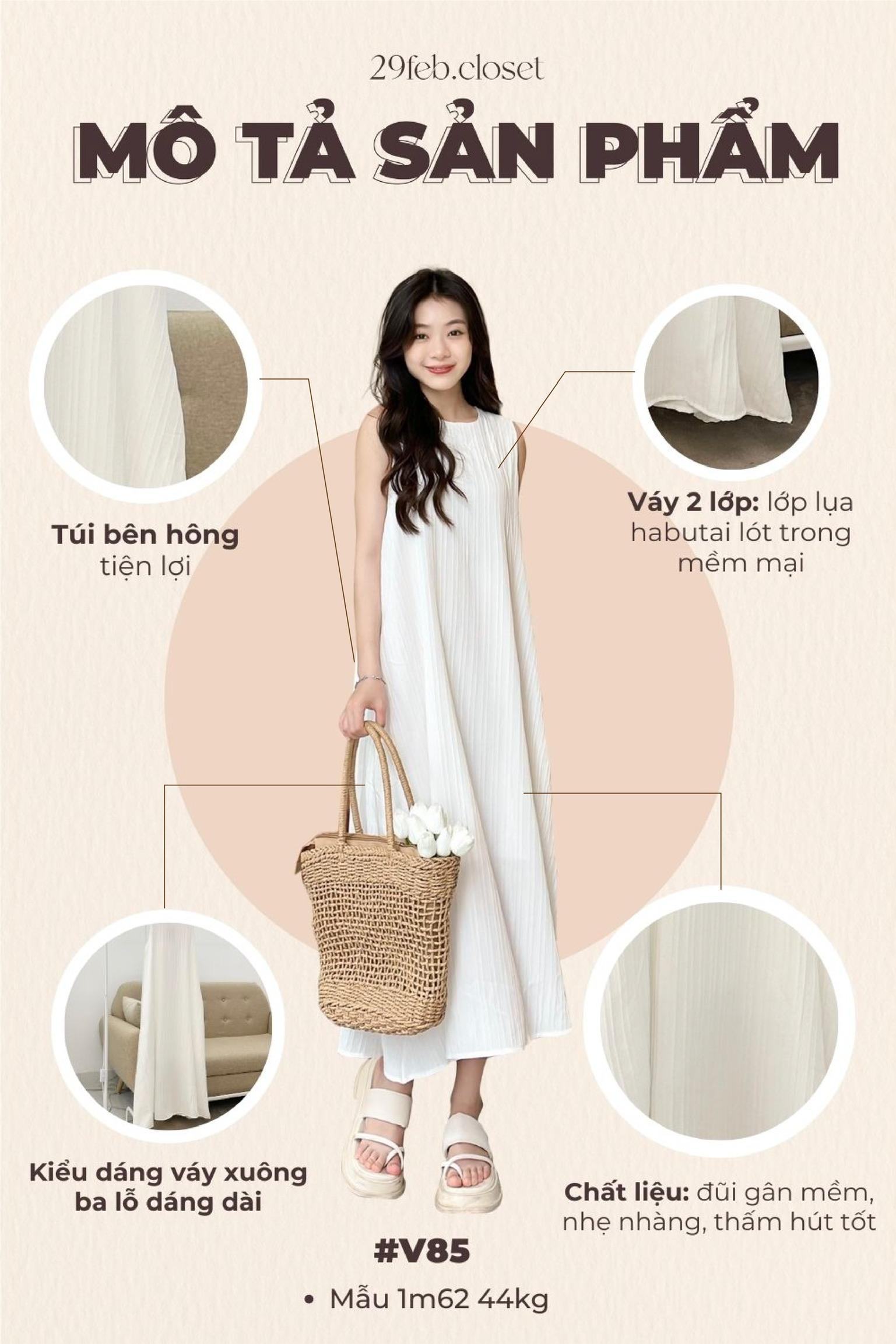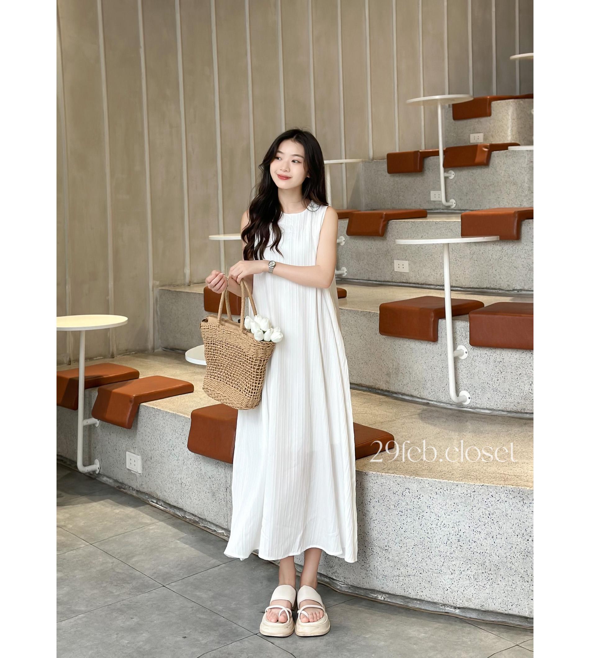 Đặc điểm: Váy ba lỗ nữ xinh nhẹ nhàng 29feb.closet chất đũi gân midi dáng xòe dài