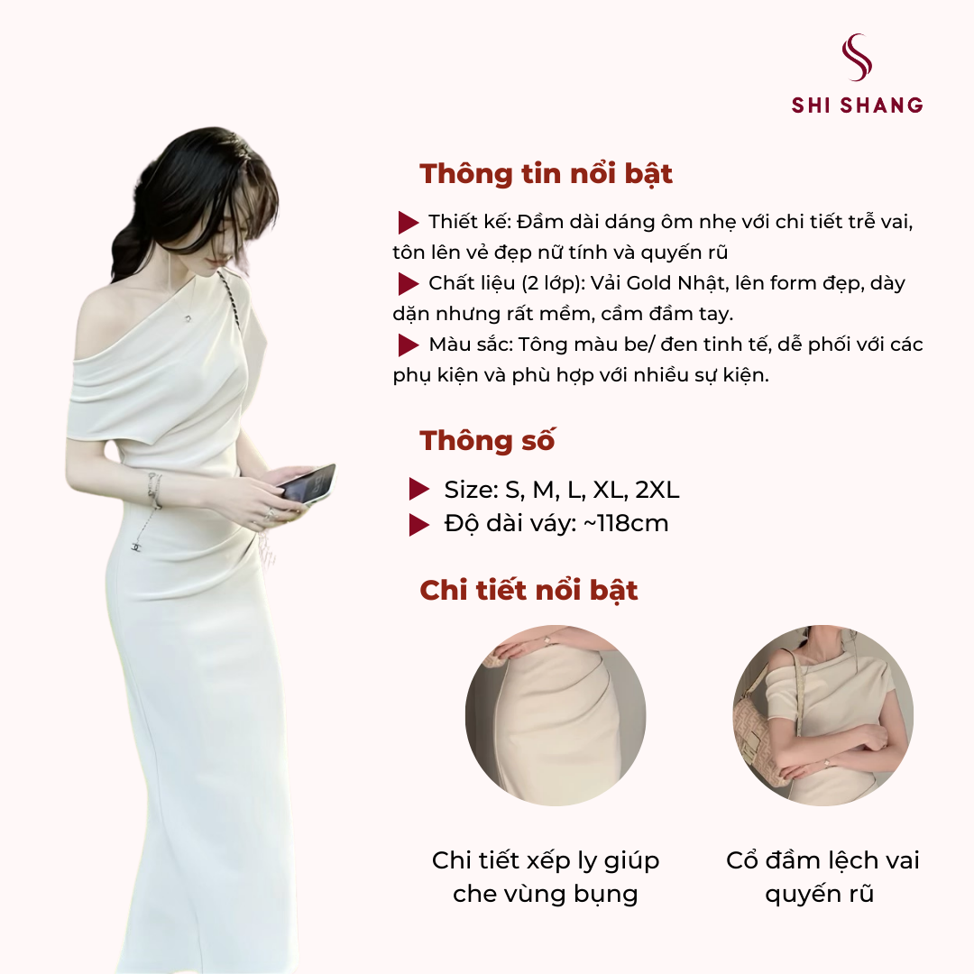 Váy body trễ vai thiết kế BIGSIZE dáng bút chì, đầm dự tiệc sự kiện chất Gold Nhật cách điệu sang chảnh Shi Shang