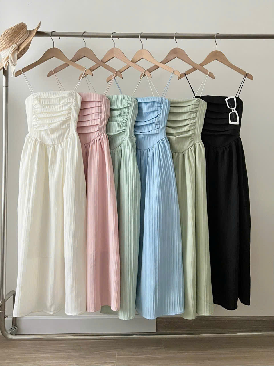 Váy 2 dây nữ cúp ngực xếp ly dáng dài, đầm maxi phong cách tiểu thư xixeoshop - V458