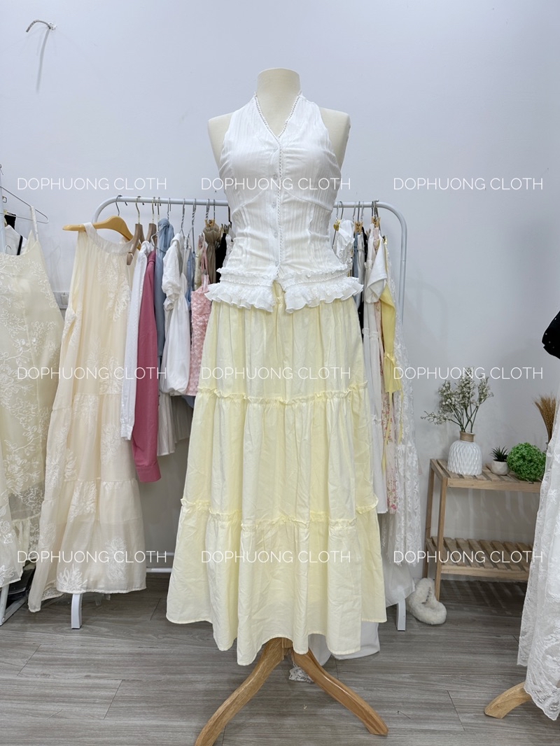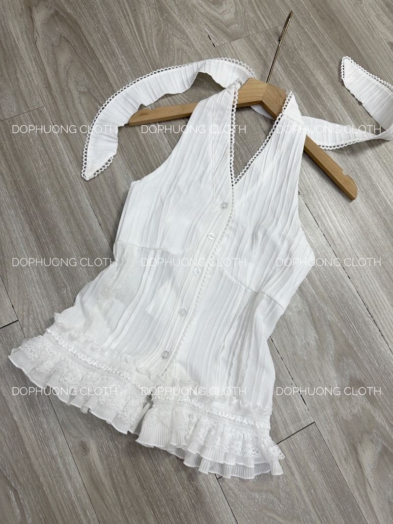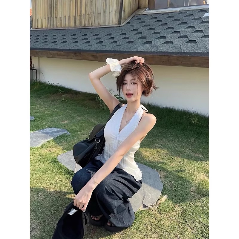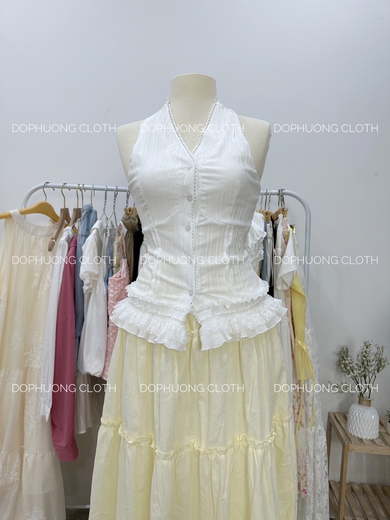 Áo hai dây cổ yếm dáng ôm nhẹ, bèo nhún nữ tính – Mẫu hot mùa hè