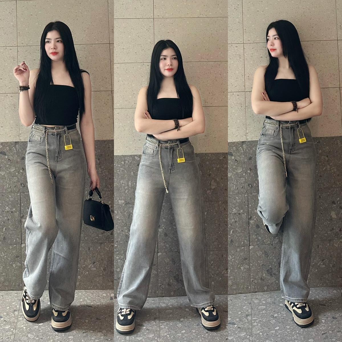 V.M-Quần Jeans Nữ Suông Trơn Túi Kiểu 2 Màu Đậm Nhạt (S-2Xl) Vải QC Mềm VM115