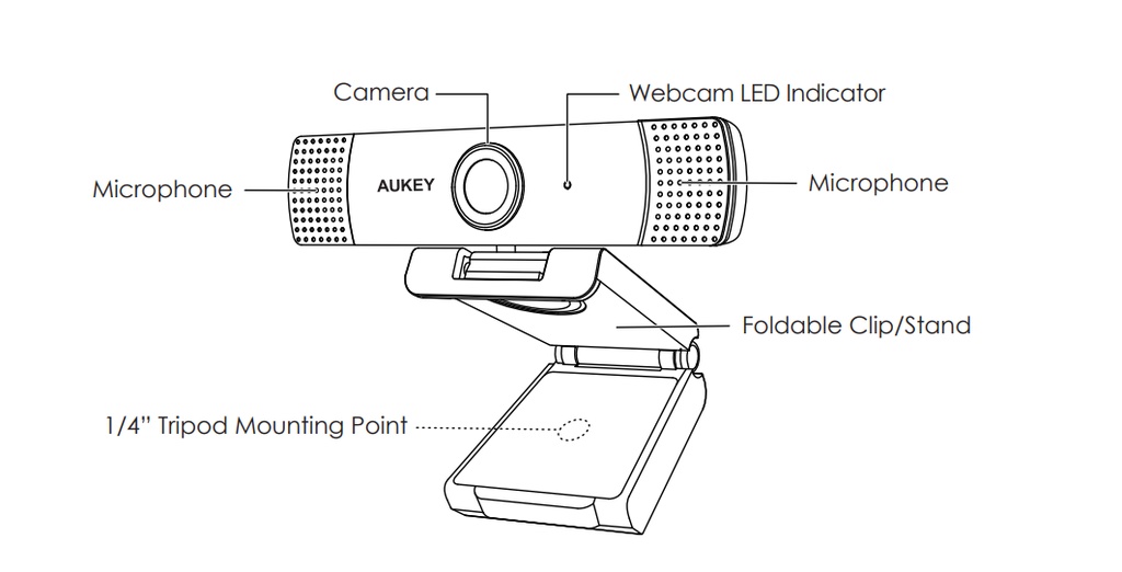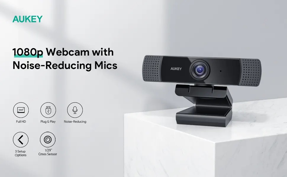 Webcam máy tính AUKEY PC-LM1E 1080P FHD Có Mic Chống Ồn 5m tự động lấy nét cho Windows XP / Mac OS 10.6 / Android